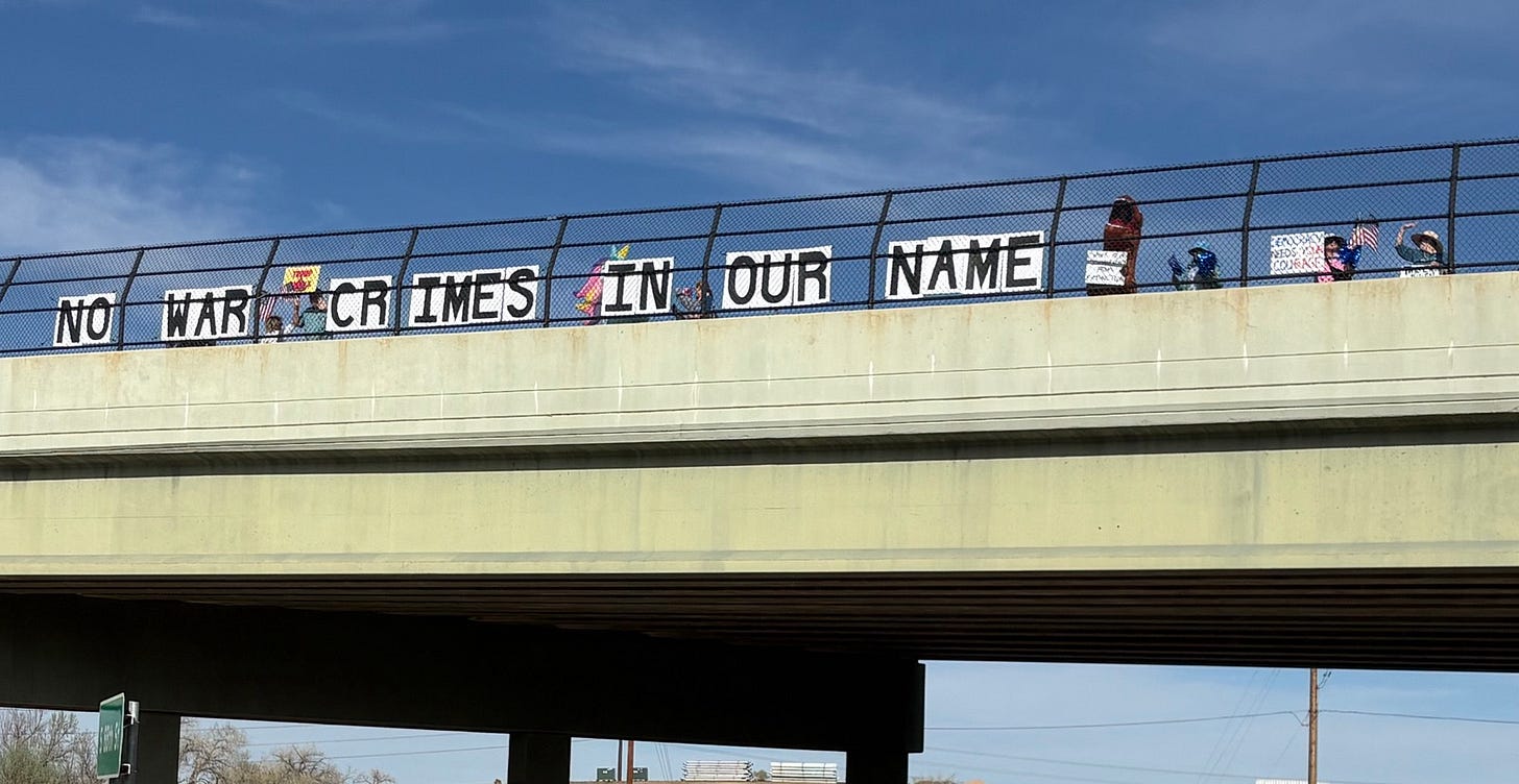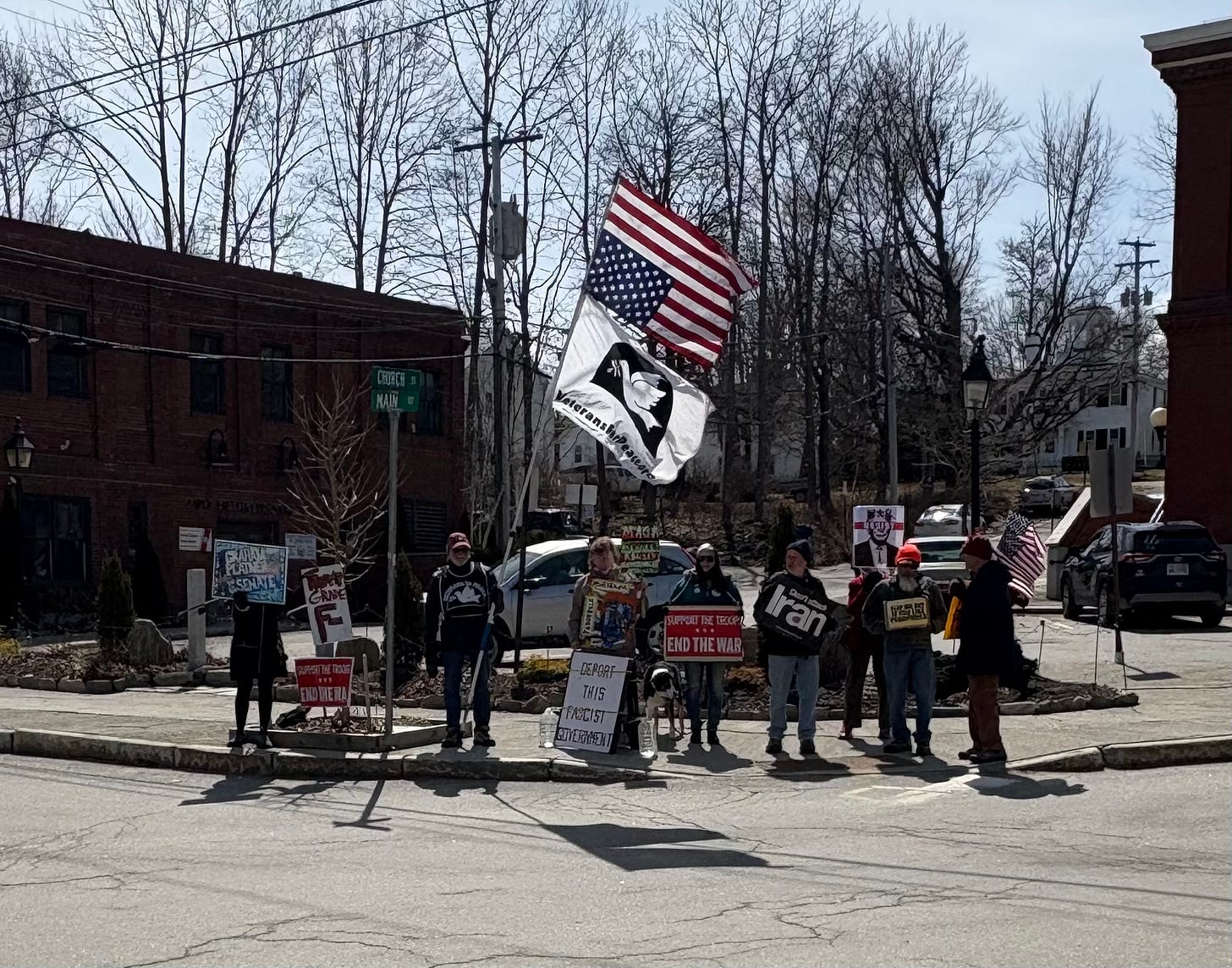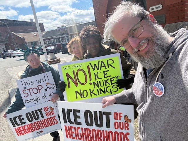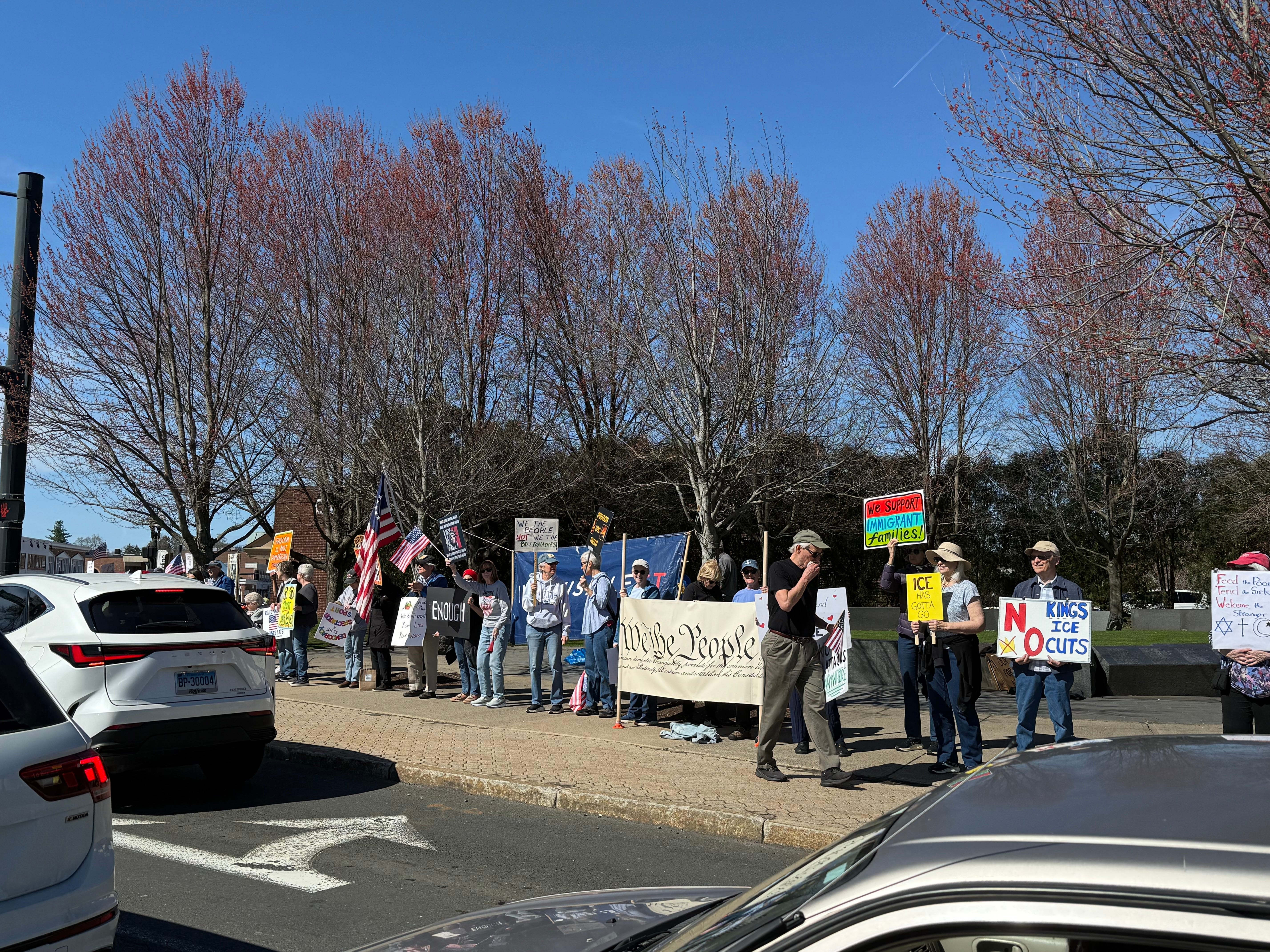 Weekly protest in West Hartford CT 4/4/26. We recite the Preamble every week as a group too