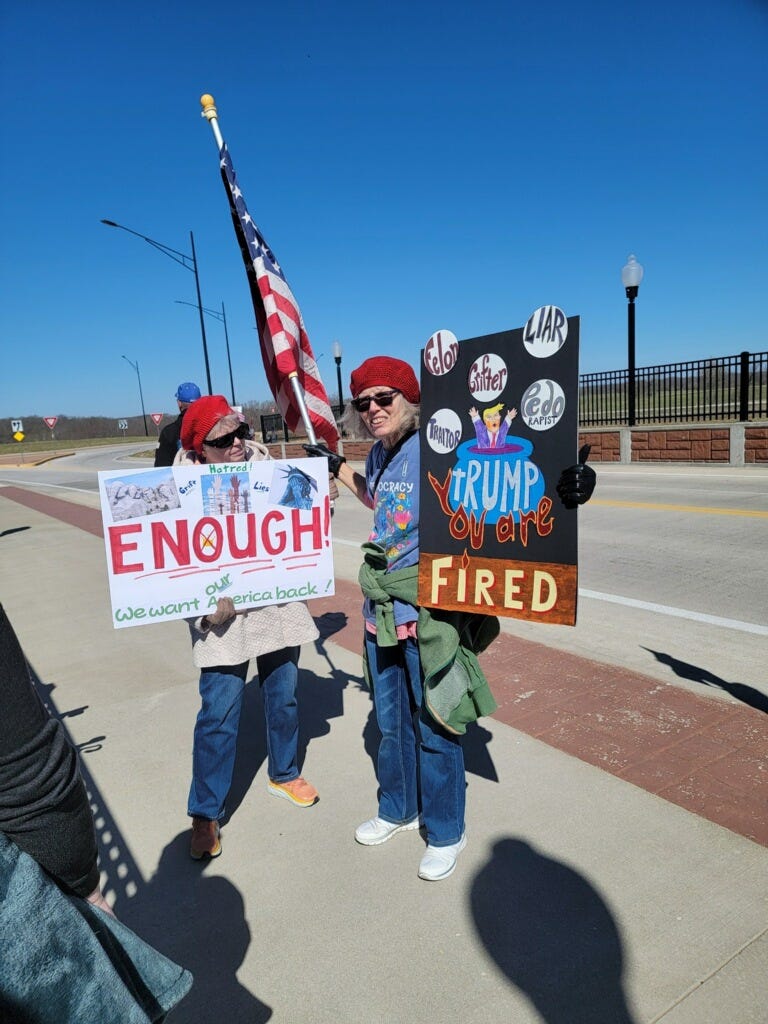 Protesting 7 days a week since April 2025, noon-1 on Post Office corner in our small town of Belfast Maine despite freezing cold, snow and rain. Looking forward to spring wishing we didn’t have to be here but we will not give up or go away.