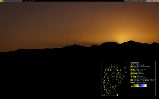 Hardware Model: ThinkPad T400 CPU: Intel Core 2 Duo P8400 RAM: 5GB Software OS: OpenBSD 7.8 WM: cwm Shell: ksh Terminal: st (formerly XTerm) Fetch: fastfetch Editor: mg Browser: links2