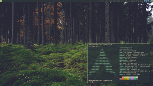 Hellfire103@lemmy.ca to unixporn@lemmy.worldEnglish · edit-24 months ago[Sway] Everforest + GoMonolemmy.caimagemessage-square0linkfedilinkarrow-up11arrow-down10