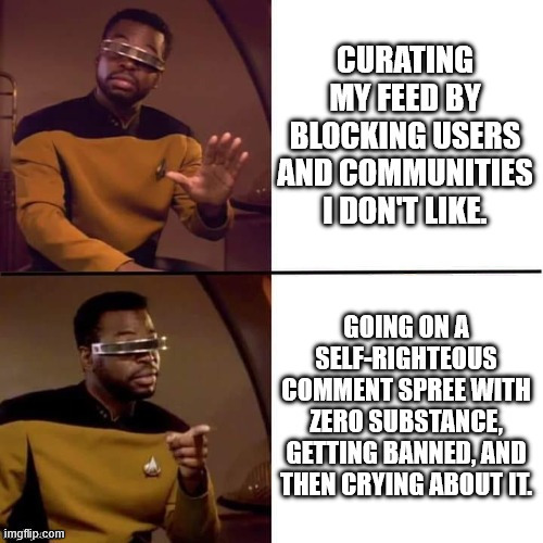if a person thinks blocking users and communities they dont like is the way to curate their feed, i hope they block all the communities im in.