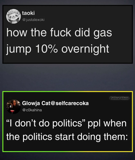 I have a friend like that. He didn’t vote for Harris because she “has an annoying voice.” When I remark how trump is turning this country into a fascist nightmare, he say “I don’t care about that political shit.” …and then he bitches about how hard is to get an appointment at the VA, how little his tax return is, and how much gas costs suddenly.
