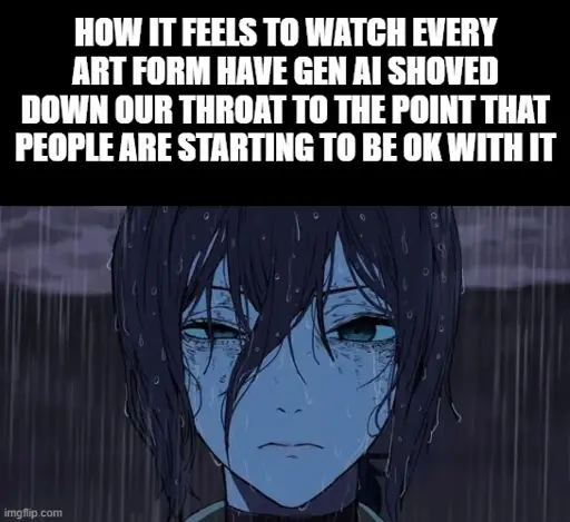 minus-squarehypertown@ani.socialOPtoAnimemes@ani.social•In the light of recent news regarding DLSS5...linkfedilinkarrow-up4·5 days agoIt’s literally a scene from the Chainsaw Man Movie… Never trust AI for recognizing AI-generated slop. Even tools that were made for recognizing slop work like 50% of the time. linkfedilink