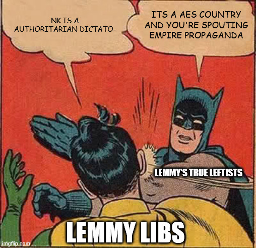 jackeroni@lemmy.ml to Memes@lemmy.ml · 10 days agoPay attention to AES countries like the DPRK, they know what to do 😁lemmy.mlimagemessage-square1linkfedilinkarrow-up12arrow-down10