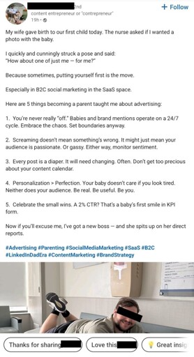 arrow-up11arrow-down1image"Because sometimes, putting yourself first is the move."lemmy.worldjavasux@lemmy.world to LinkedinLunatics@sh.itjust.worksEnglish · 8 months agomessage-square0linkfedilink